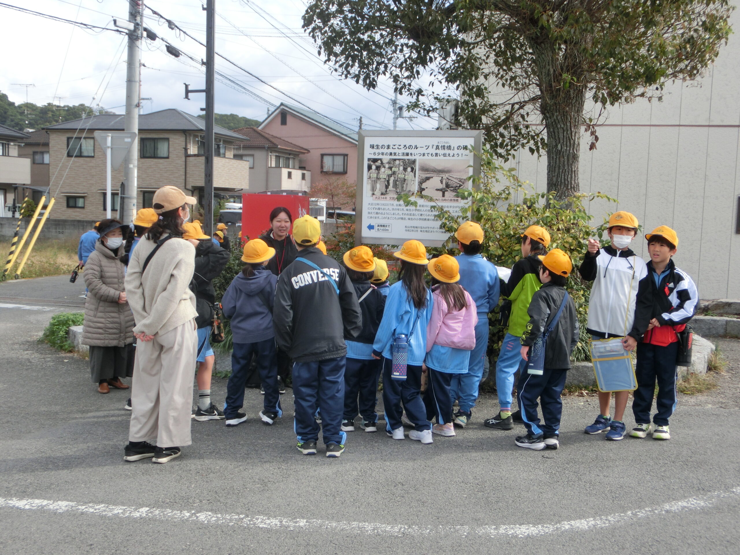 公開日 2026/1/15 お知らせ活動報告 教育文化部 味生小学校まごころウォークラリー見守り協力 令和7年11月18日(火)天候にも恵まれ、まちづくり協議会からお願いした32名の皆さんのご協力のもと、まごころウォークラリーが開催されました。味生小学校からは、見守り協力に対して「子どもたちは地域の良さや温かさに触れ、満足した表情で学校へ戻ってきました」と感謝の言葉をいただきました。皆さんのお力添えが、子どもたちの地域への愛着を育む大きな一助となりました。 真情橋案内板 浄明院 高家八幡神社