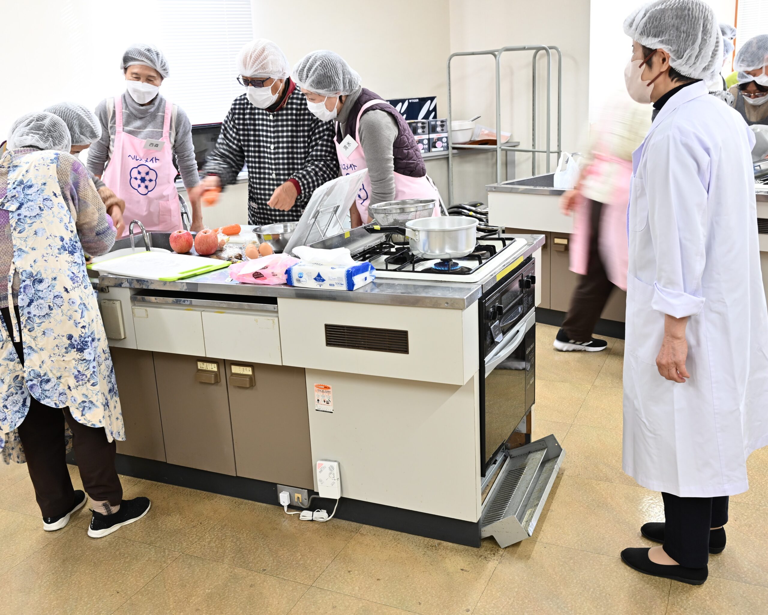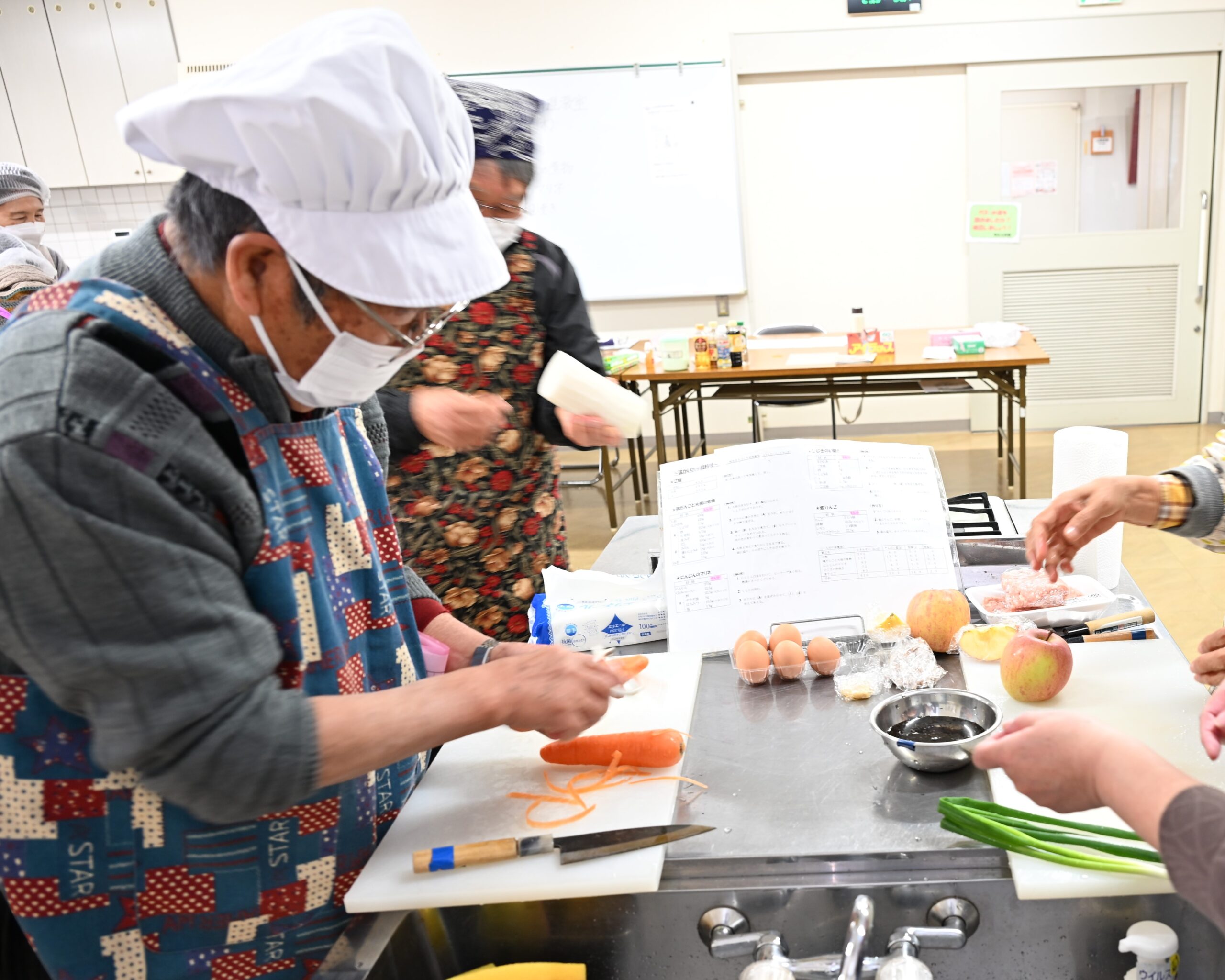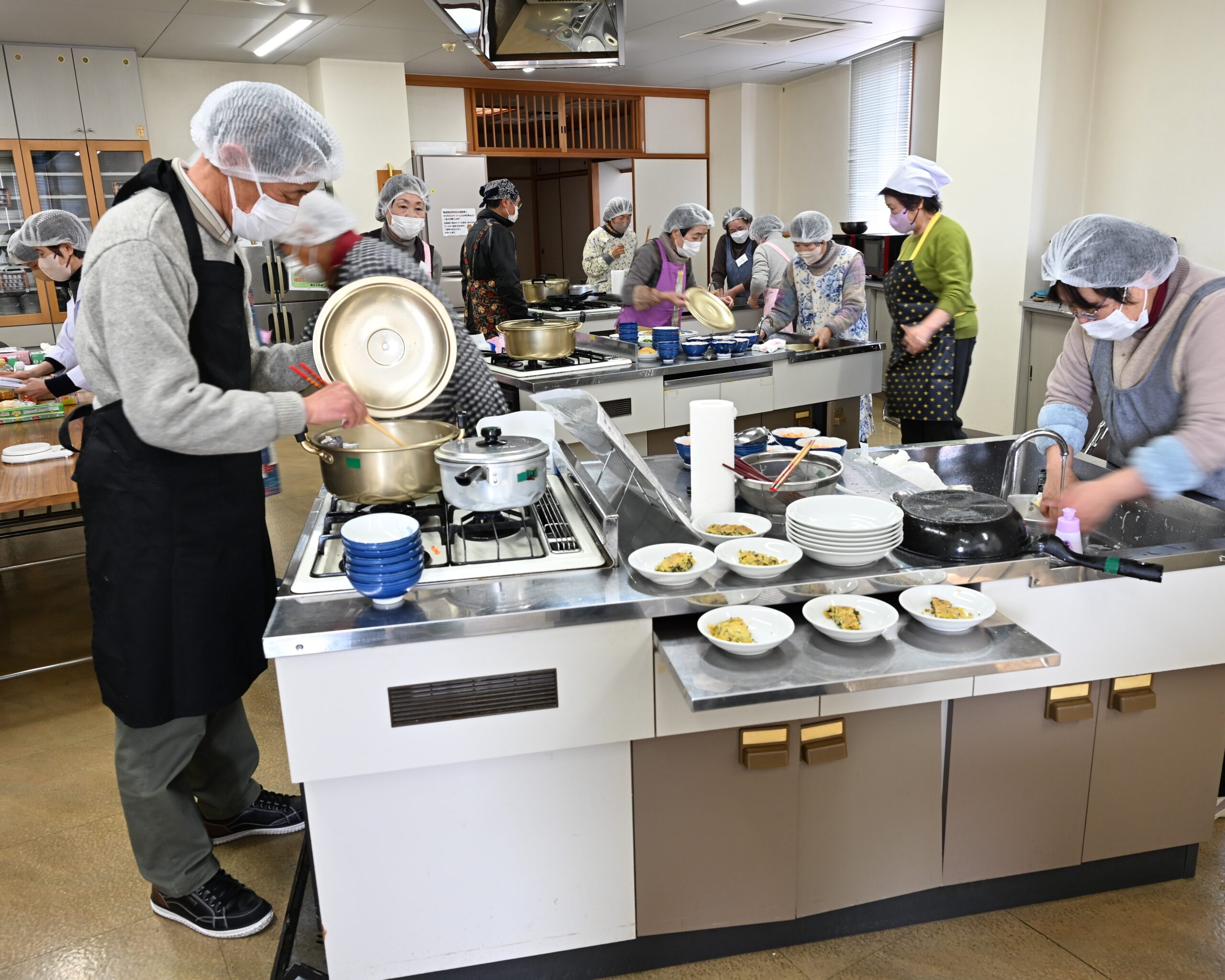 公開日 2026/2/18 最終更新日 2026/2/26 お知らせ活動報告 福祉部 いきいき料理教室 令和8年1月29日実施 テーマ:しっかり食べて体の中から温まる!!~温かいお手軽料理~講師:管理栄養士 宅宮早苗先生協力:食生活改善推進協議会味生支部6名参加者:男性4名と女性8名(福祉部部員含む)最初に「冷え改善には3食しっかり。特にたんぱく質を欠かさない。」ことを講義していただき、その後4班に分かれて、献立を完成させました。 講習 献立 調理の様子 会食の様子