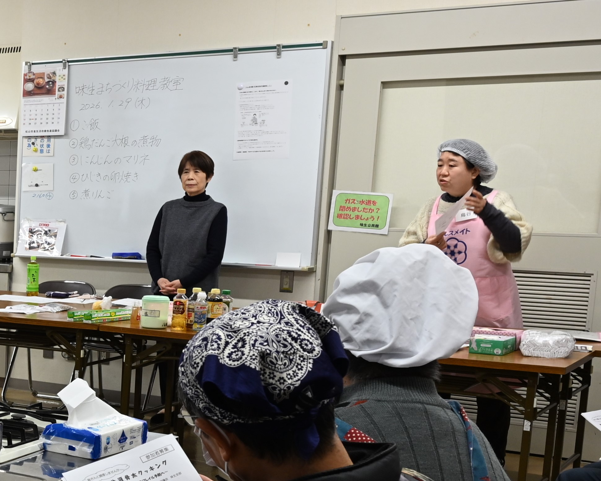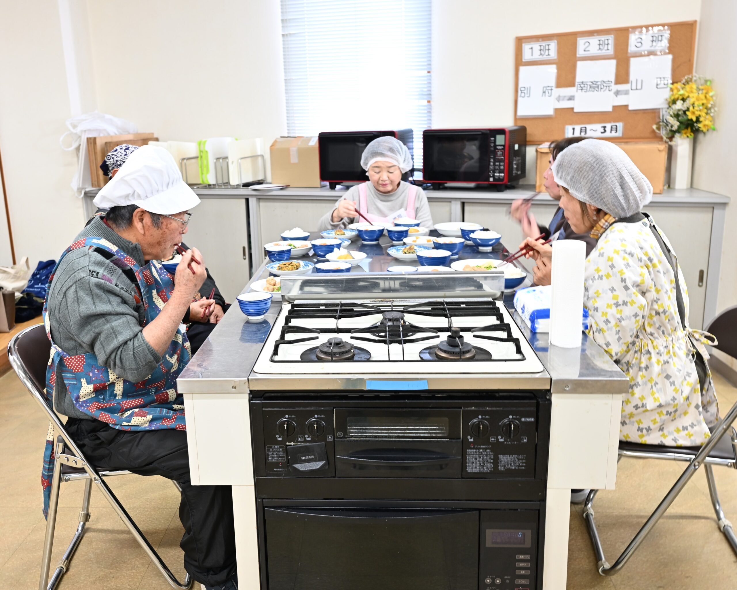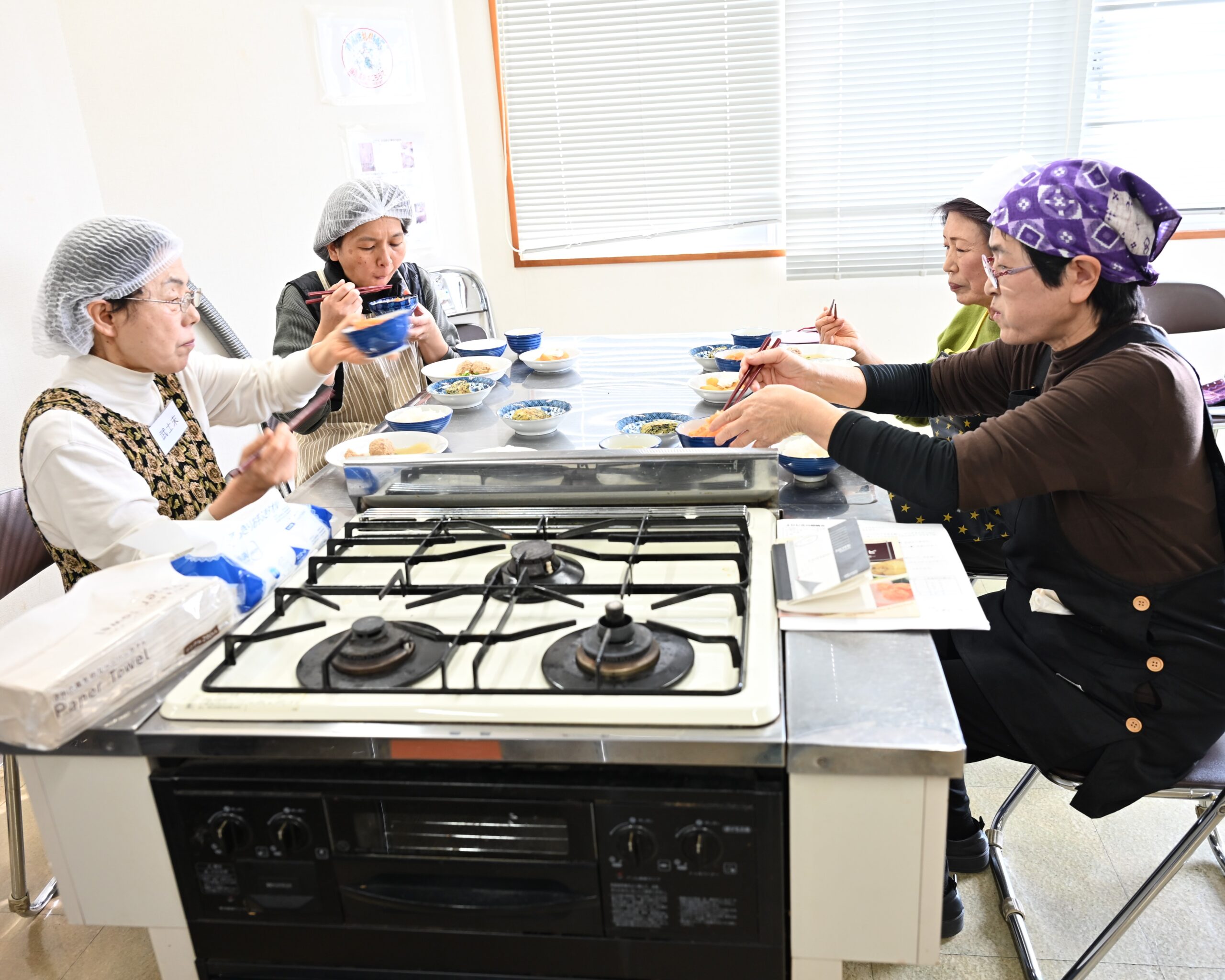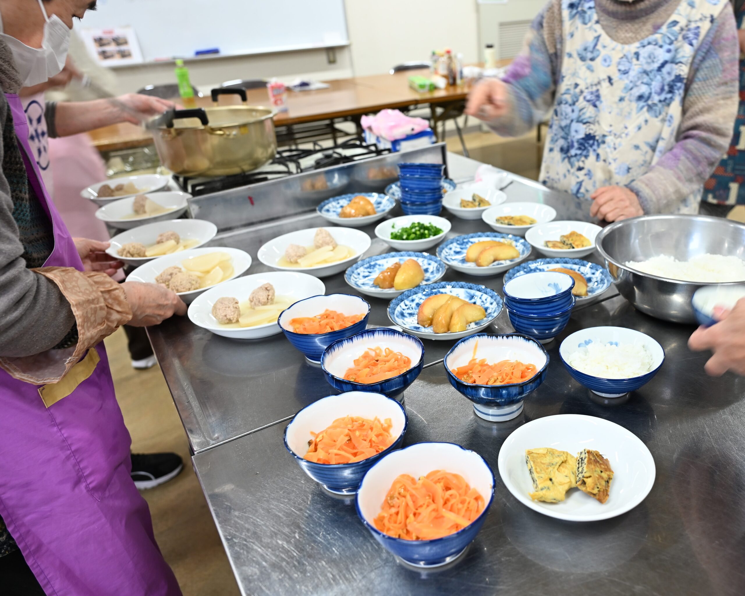 公開日 2026/2/18 最終更新日 2026/2/26 お知らせ活動報告 福祉部 いきいき料理教室 令和8年1月29日実施 テーマ:しっかり食べて体の中から温まる!!~温かいお手軽料理~講師:管理栄養士 宅宮早苗先生協力:食生活改善推進協議会味生支部6名参加者:男性4名と女性8名(福祉部部員含む)最初に「冷え改善には3食しっかり。特にたんぱく質を欠かさない。」ことを講義していただき、その後4班に分かれて、献立を完成させました。 講習 献立 調理の様子 会食の様子