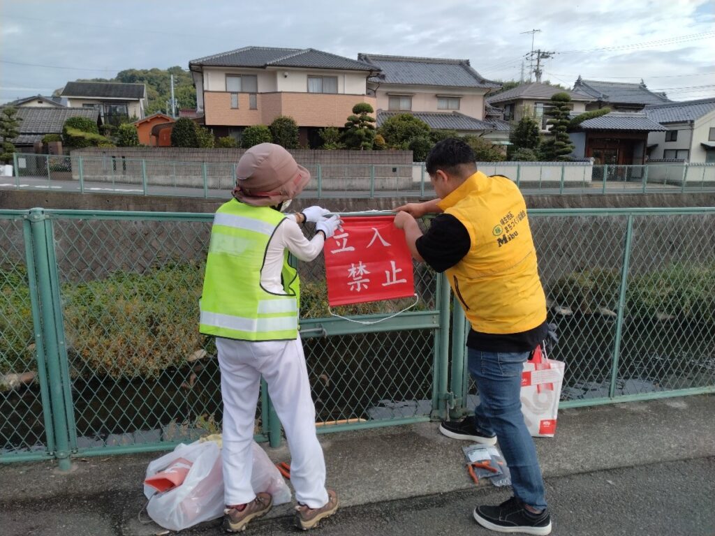 宮前川沿いの標識交換と美化(2回実施)